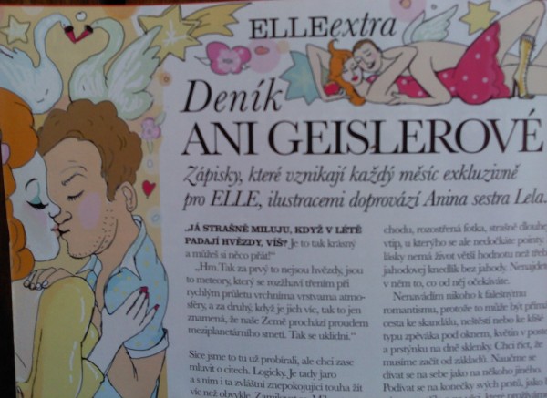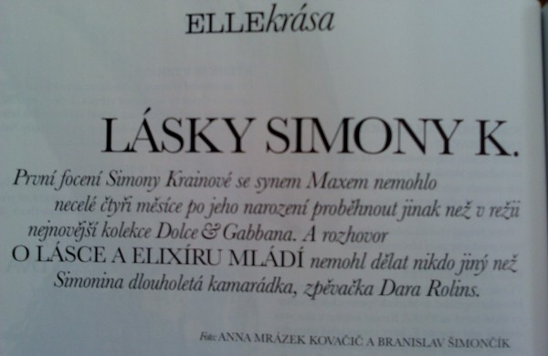 poté následuje úvod od šéfky Elle,kousek vám tu napíšu:"V pátek ráno 11.března 2011 středoevropského času jsem opět měla štěstí .Vzbudila jsem se v teplé posteli ,koupla si svoj oblíbenou kávu a pak šla připravovat časopis,který právě držíte v ruce."