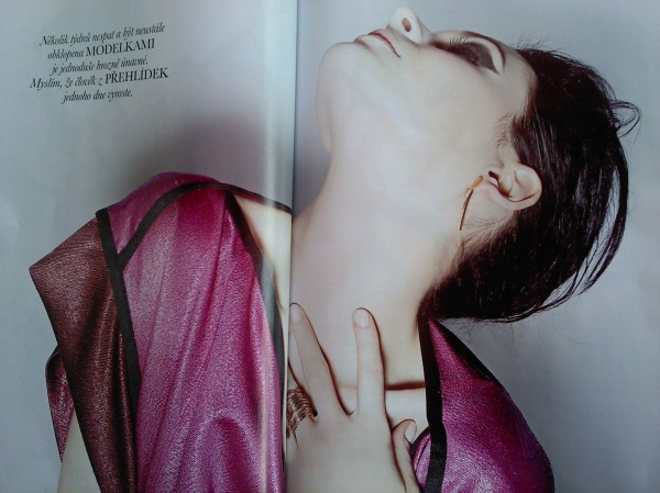 K.R.:Abych pravdu řekla,ano i ne.Obecně s stále připadám dost komicky,když mám zmínit modu nebo modeling jako odpověd na dotaz,co dělám.Vlastně nikdy neříkám,že jsem modelka.Raději odpovím,že jsem studentka.Studenty si totiž daleko víc spojuji s pocitem svobody a volnosti.Ve skutečnosti mají,ale studentský a modelkovský život paradoxně dost společného-hodně práce ,kompromisů a tvrdé dřiny někdy až do hluboké noci.Možná se s pojmenováním modelka nemůžu ztotožnit ,že to lidé mrknutím oka zjednoduší a zaškatulkují si vás do obecného klišé jako"hezká,ale blbá".To slovo jako by bylo infkováno negativními a ambivalentními představami .Vy pak musíte vynaložit docela velké úsilí,abyste takto zkreslenou představu vyvrátila .A to je přesně to ,co na modelingu nemám ráda-tu celou řadu předvídatelných reakcí a to, jak s vám lidé zacházejí,když řeknete"Jsem modelka"Vadí mi fakt,že jsem okamžitě vnímána jako někdo konkrétní v rámci jakési viditelnosti.