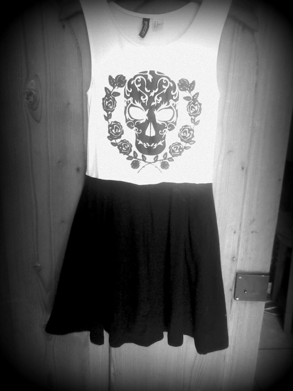 A můj nejnovější kousek.Šaty s lebkou.S mojí kamarádkou jsme si šli léčit komplexy nákupama,tyhlety šaty nás obě tolik zaujali ,že jsme nemuseli váhat ani minutu a bylo jasno,že budou naše!