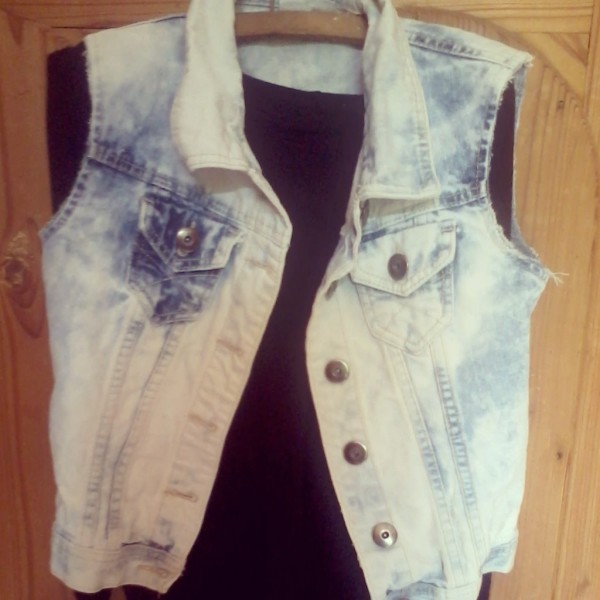 Riflová vestička,původně to byla riflová bundička,ale pod nátlakem letošní mody vest,jsem se rozhodla trochu jí pozměnit